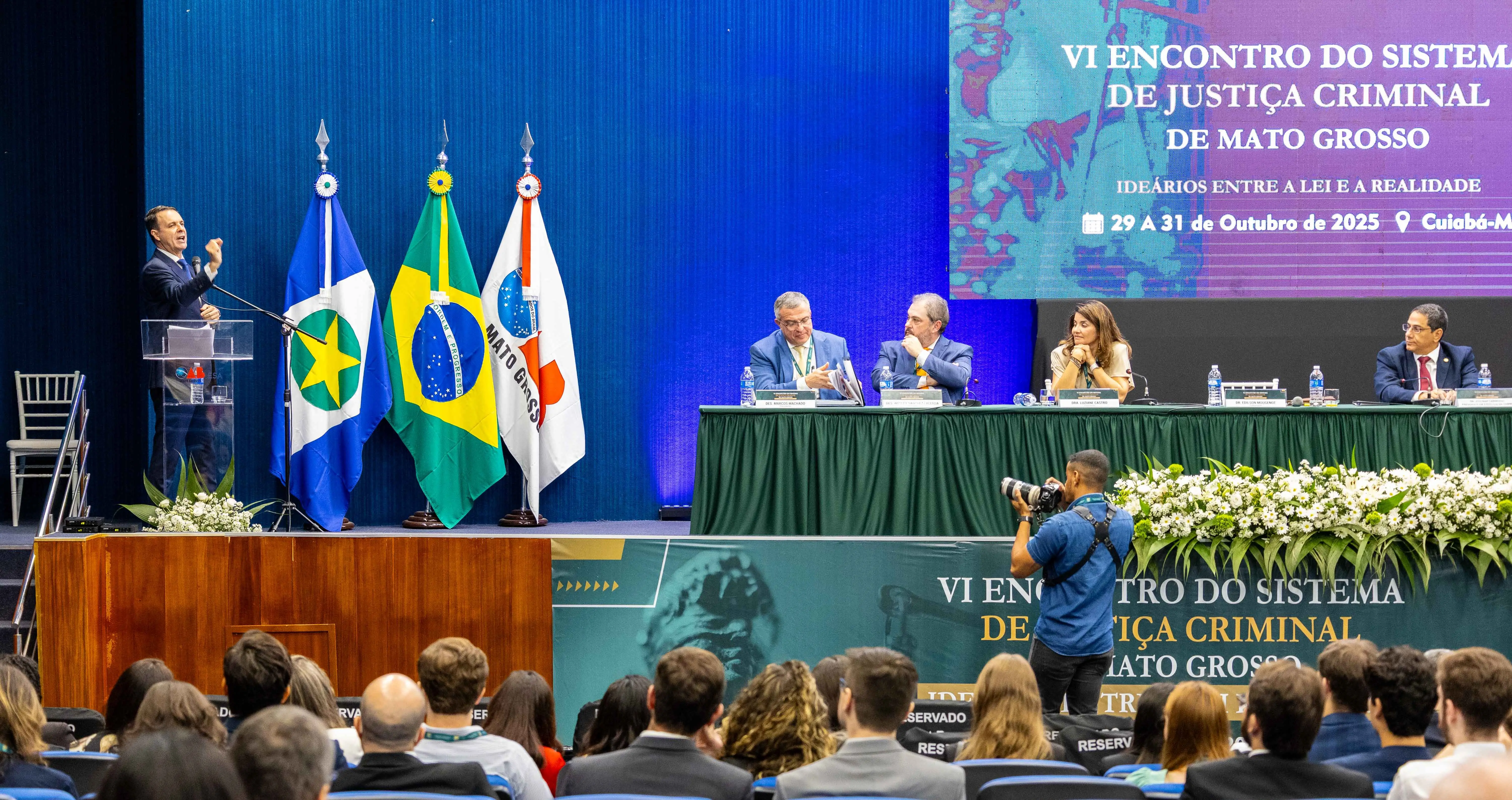 O procurador de Justiça Edilson Mougenot Bonfim, do Ministério Público de São Paulo, proferiu a palestra inaugural do “VI Encontro do Sistema de Justiça Criminal do Estado de Mato Grosso – Ideários entre a Lei e a Realidade”, que teve início na noite de ontem (29 de outubro), em Cuiabá. Na oportunidade, o professor, que é doutor em Direito Processual Penal, falou sobre o Sistema de Justiça Criminal na atualidade.